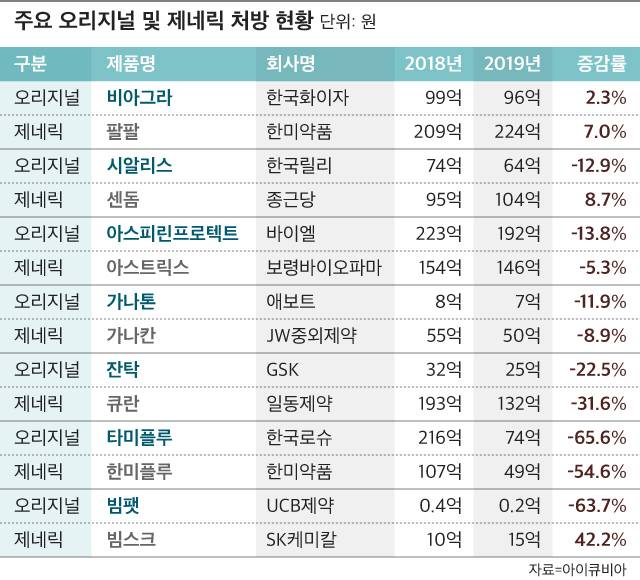 블록버스터급 오리지널 의약품 매출을 넘어선 제네릭도 있다. 28일 의약품 시장조사기관 아이큐비아에 따르면 일부 제네릭은 오리지널과 대등하거나 그 이상의 매출을 기록했다.