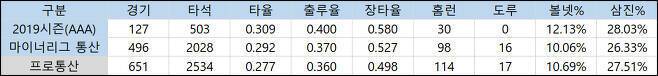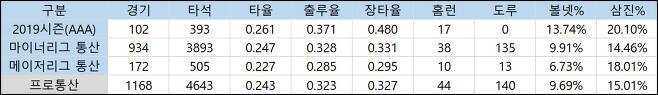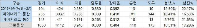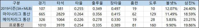 하지만 타격 측면에서 우려섞인 시선을 거둬들이기에는 아직 이르다. 지난해 홈런 폭증은 반발력이 강화된 공인구를 상대하며 만들어진 결과다. 타구 분포는 예전과 큰 차이가 없는데 플라이볼 대비 홈런만 늘어난 것이다. 반발력이 저하된 KBO리그의 공인구를 상대로 어떤 모습을 보일지는 미지수다.