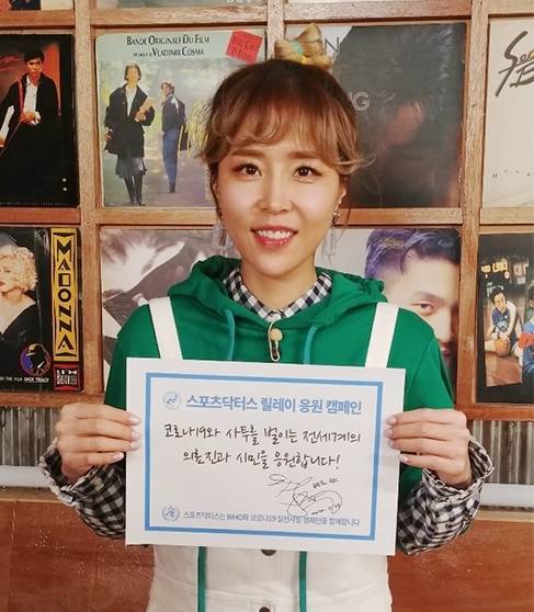 신지가 속한 그룹 코요태는 지난 3월 바이러스 극복을 위해 5000만 원을 기부한 바 있다. 신지는 “하루빨리 바이러스가 극복되길 바라는 마음으로 캠페인에 힘을 보탰다”면서 “전 세계 모든 의료진과 시민 여러분 파이팅!“이라며 메시지를 보냈다. 신지와 함께 엠넷 ‘퀴즈와 음악 사이’에 출연 중인 이국주 역시 응원 문구와 사인을 보내왔다.