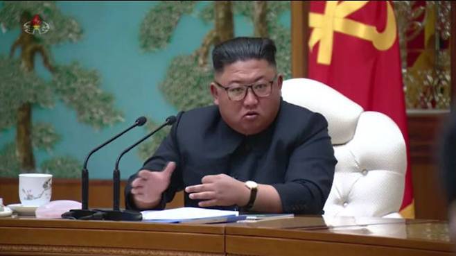 먼저, 지난달 11일 정치국 회의에 참석했던 김 위원장의 모습들입니다.