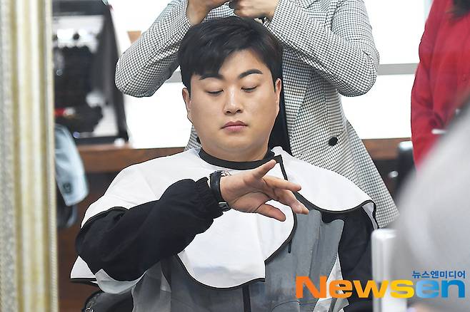 ‘미스터트롯’ 가수 김호중이 5월 2일 오전 MBC ‘쇼! 음악중심’ 참석에 앞서 서울 강남구 신사동의 한 헤어숍에서 메이크업을 하고 있다.