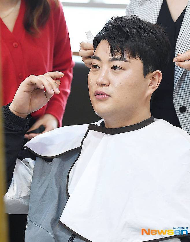 ‘미스터트롯’ 가수 김호중이 5월 2일 오전 MBC ‘쇼! 음악중심’ 참석에 앞서 서울 강남구 신사동의 한 헤어숍에서 메이크업을 하고 있다.
