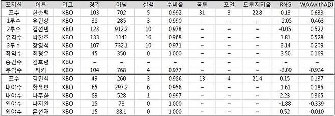 앞선 [선발-불펜-타선] 평가에 이어 마지막으로 살펴 볼 [팀 수비] 평가 기준은