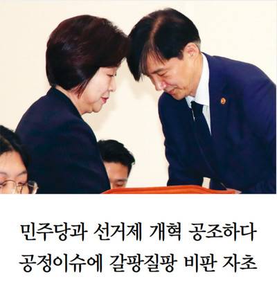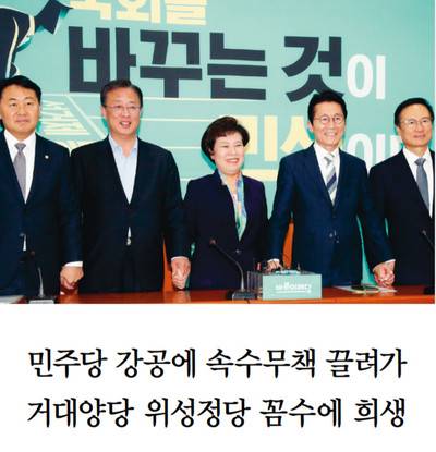 지난해 4월 패스트트랙에 오른 선거제 개혁안은 12월 본회의 상정 직전까지 후퇴를 거듭하며 ‘누더기’가 됐다. 정치개혁특위가 합의한 선거제 개정안 원안은 ‘253 대 47’인 지역구와 비례대표 의석수를 ‘225 대 75’로 조정하고, 연동형 비례대표제를 도입해 비례성을 확대한다는 게 뼈대였다. 그러나 선거제 개혁안의 본회의 자동부의 시점인 12월 초 민주당과 정의당·바른미래당·민주평화당·대안신당으로 구성된 ‘4+1’ 실무단에서는 연동형 ‘캡’과 석패율제 도입에 대한 이견으로 합의안 도출이 거듭 지연됐다. 결국 연동형 캡 30석을 21대 총선에만 한시적으로 적용하고, 석패율제는 없앤 최종안이 12월 말 국회를 통과했다. 민주당의 강공에 정의당 등 소수정당들이 속수무책으로 끌려간 결과였다. 이는 결국 거대 양당의 위성정당 창당과 의회의 양당구도 회귀로 이어졌다.