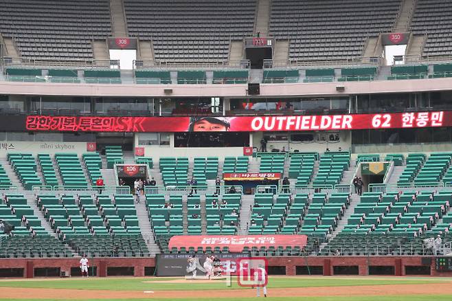 [이데일리 스타in 이영훈 기자] '2020시즌 KBO 공식 개막전' SK 와이번스와 한화 이글스 경기가 5일 오후 인천 남구 인천SK행복드림구장에서 열리고 있다.