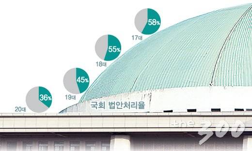 상임위가 제때 열리지 못한 탓이 크다. 지난 4년간 국회 보이콧만 20여차례가 있었다. 여야 합의는 최근 1년간 7번 파기됐다. 19대 국회에선 183일 동안 총 836시간 본회의를 열었지만 20대 국회(지난 3월 기준)는 150일, 506시간에 불과했다. 여야 모두 민생을 위한 법안 처리에 소홀했다는 지적을 받는 이유다.