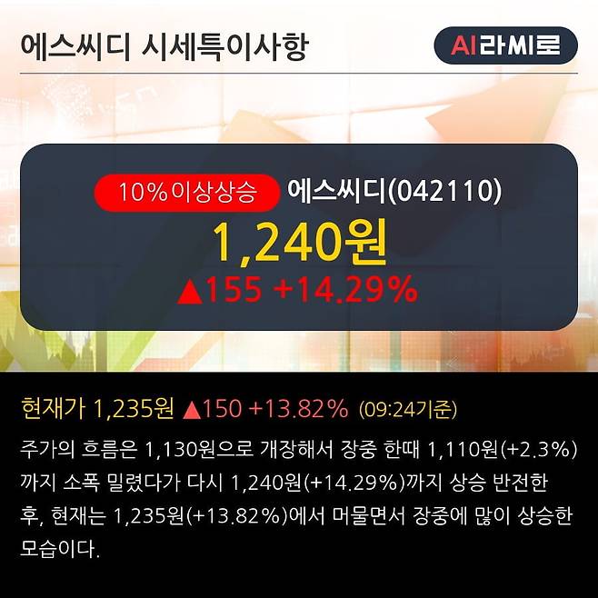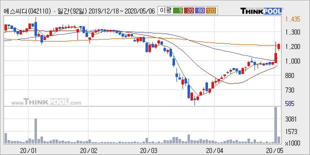 '에스씨디' 10% 이상 상승, 주가 상승 중, 단기간 골든크로스 형성