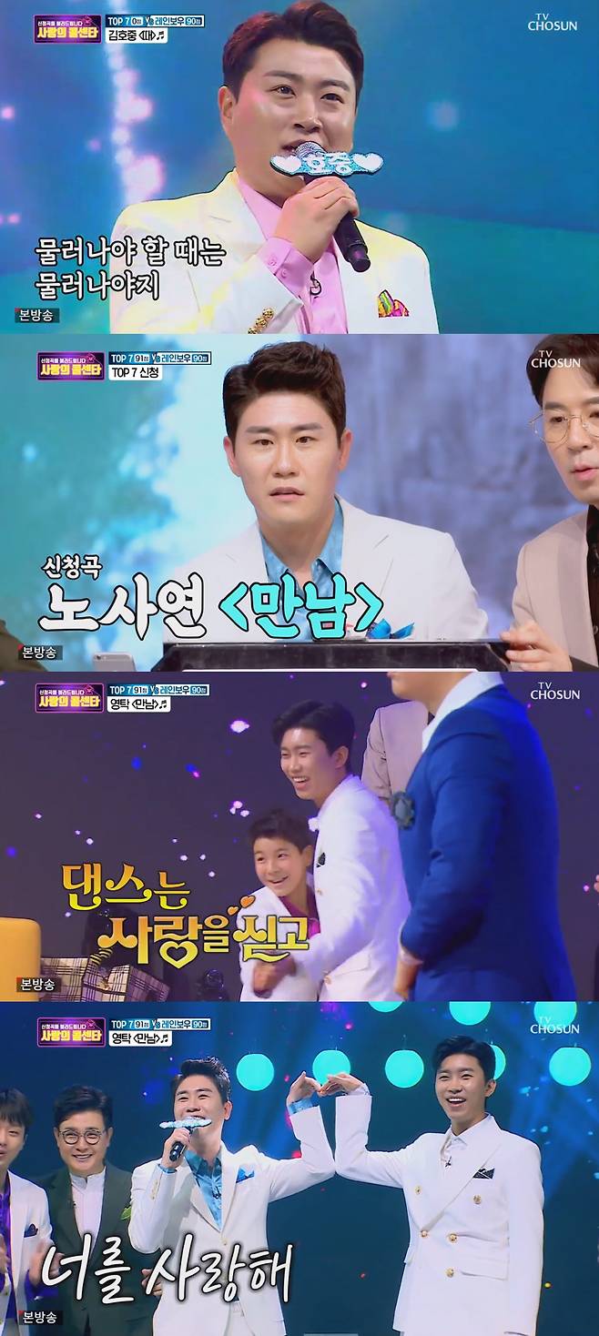 7일 방송된 TV CHOSUN '신청곡을 불러드립니다-사랑의 콜센타'(이하 '사랑의 콜센타')에서는 '미스터트롯' 탑7와 레인보우 7인이 맞붙었다.