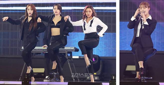 이날은 휘인이 부상을 당해 무대에서는 얌전할 수밖에 없었죠.