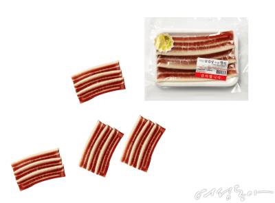 삼겹살 모양 젤리는 삼겹살데이를 맞아 출시된 제품으로 가격도 라임에 맞춘 3천3백원이다. 정육점에서 판매하는 삼겹살과 유사한 패키지로 SNS를 뜨겁게 달구는 중. 비닐 포장을 뜯고 스티로폼 위에 덮인 랩을 벗기는 순간 삼겹살 육즙 대신 멀리서도 훅 느껴지는 특유의 딸기 향이 코끝을 찌른다.