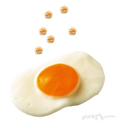 앙증맞은 사이즈의 젤리들 사이에서 유난히 묵직하고 커다란 프라이드 계란 모양 구미는 큼직한 사이즈만큼 씹는 재미가 쏠쏠하다. 첫 맛은 밍밍하다고 느낄 수 있지만 씹으면 씹을수록 딸기 사탕을 녹인 것처럼 새콤한 맛이 매력적이다. 퇴근길 편의점에 들러 시원한 캔맥주와 함께 먹을 간단한 안주거리를 고민하는 이들에게 강력 추천하고 싶다. 쥐포는 식상하고 과자의 느끼함은 부담스러운 '편맥’ 마니아라면 '젤맥’ 조합에 꼭 도전해보길!