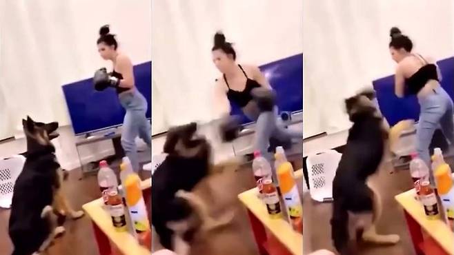 문제가 된 영상에서 여성은 권투 용구를 착용한 채 반려견을 일방적으로 공격했고, 반려견은 뛰어오르고 울부짖으며 고통스러워했습니다.