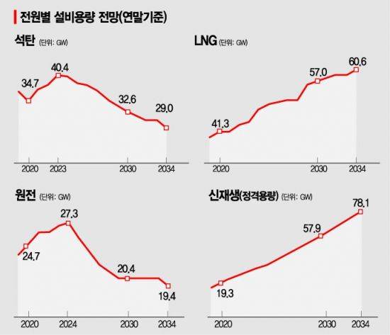 이날 위원회는 2034년 전체설비용량이 122.4GW로 전망된다고 밝혔다. 기준예비율로는 22%를 설정했다. 기준예비율을 유지하려면 127.1GW의 목표설비가 필요하기 때문에 4.7GW의 부족분이 생기는데, 이를 LNG와 양수발전으로 채우겠다고 했다.