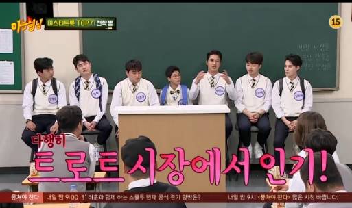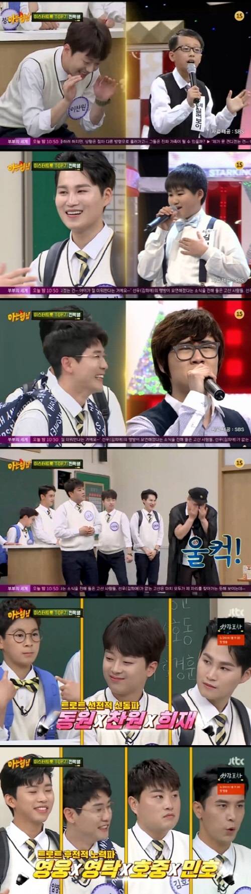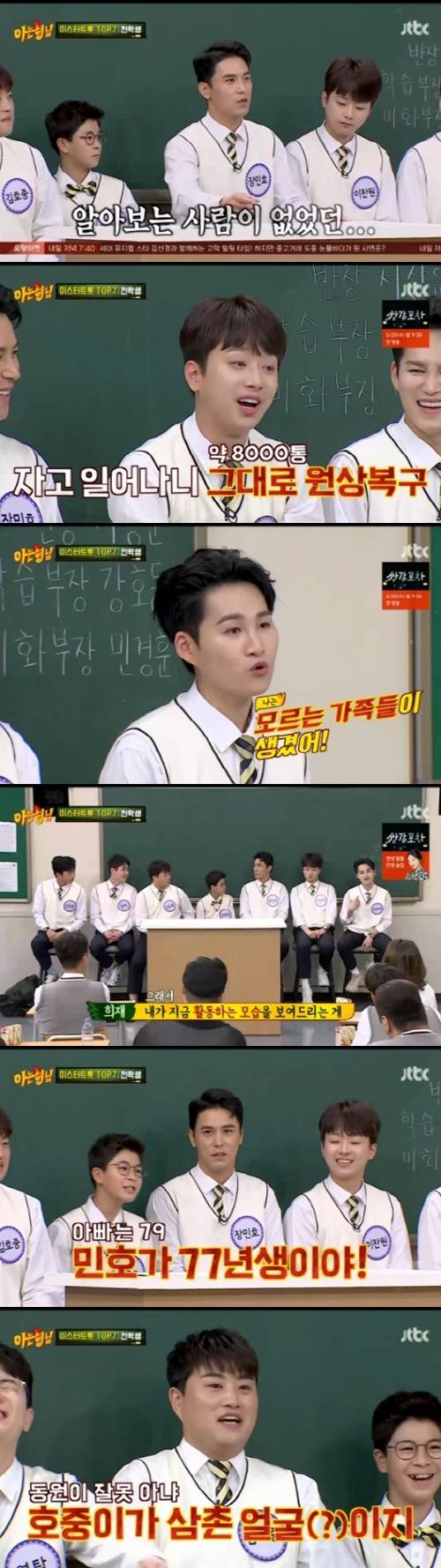 9일 방송된 JTBC '아는 형님'에는 '미스터트롯' TOP7의 주인공인 임영웅, 영탁, 이찬원, 김호중, 정동원, 장민호, 김희재가 전학생으로 출연한다.
