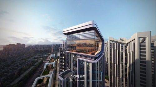 도심의 화려한 야경과 반포천을 조망할 수 있는 스카이 가든은 언제나 여유로움으로 가득한 천상 낙원을 선사하고 하늘 위에 수놓인 특별한 공간인 스카이 큐빅은 2개 층 전체를 4면 개방형 창으로 계획하고 헤드는 포인트를 주어 세련미를 더했다.