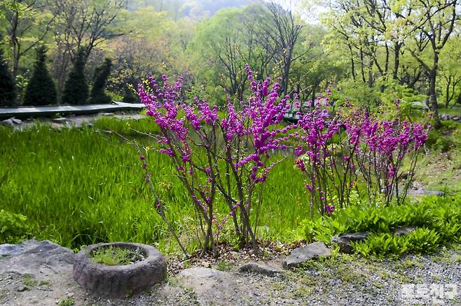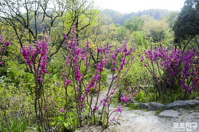 신구대학교 식물원에 핀 박태기나무 꽃.