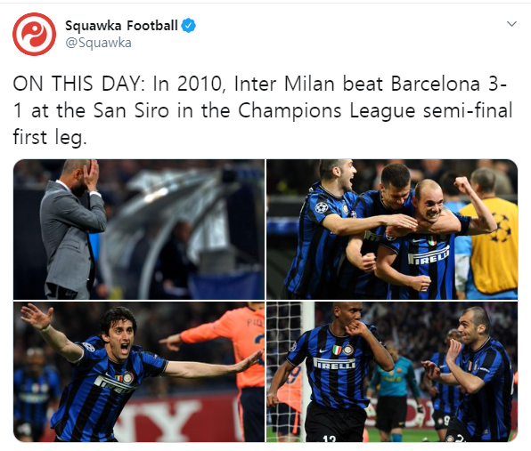 1차전 승리팀은 인테르였다. 페드로에게 선제 실점했지만, 스네이더르와 마이콩 그리고 밀리토가 연속 골을 가동하며 3-1로 승리했다. 2차전 원정은 달랐다. 티아구 모타의 퇴장이라는 악재까지 겹쳤다 이 때부터 무리뉴는 철저히 수비적인 축구로 바르셀로나를 상대했다. 후반 막판 피케의 골이 터졌지만 경기를 뒤집을 수는 없었다. 그렇게 인테르는 꿈에 그리던 UEFA 챔피언스리그 결승 무대에 진출할 수 있었다.