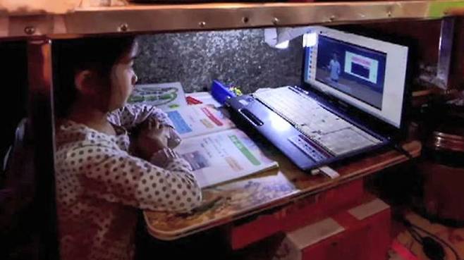 코로나로 학교 못 가자..시장 바닥에 만든 '공부방'