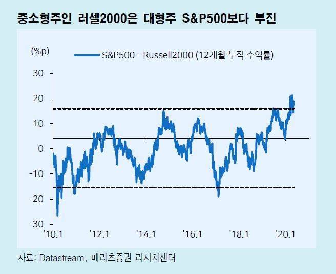 나스닥 시장은 과거에 스타트업과 성장형 중소기업이 주류를 이뤘지만 지금은 공룡으로 성장한 대기업들의 시가총액 비중이 커져 지수를 좌우하고 있다. 스탠더드앤드푸어스(S&P)500지수의 양극화 구조는 더 심하다. 마이크로소프트, 애플 등 시가총액 상위5개 종목 주가는 2018년 1월 이후 50% 가까이 상승한 반면, 이를 제외한 나머지 종목은 50% 가까이 하락했다. 중소형주 대표 지수인 러셀2000은 이들 지수의 수익률을 크게 밑돌고 있다.