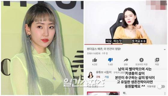 해당 유튜버는 최근 자신의 채널을 통해 '원더걸스 예은, 이 인간이 정말!'이라는 제목의 영상을 공개, "이제는 이모가 돼버린 원더걸스의 예은. 여태껏 성 상품화 잘 시켜 가수 활동하며 남들이 평생 가도 못 벌을 돈이란 돈은 다 벌어놓고 이제 와서 본인도 페미니스트라 선언했다. 이 이유는 왜일까"라고 말했다.