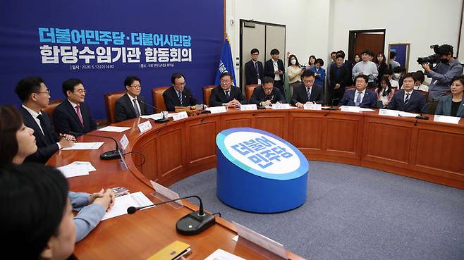 ▲ 더불어민주당 · 더불어시민당 합당수임기관 합동회의