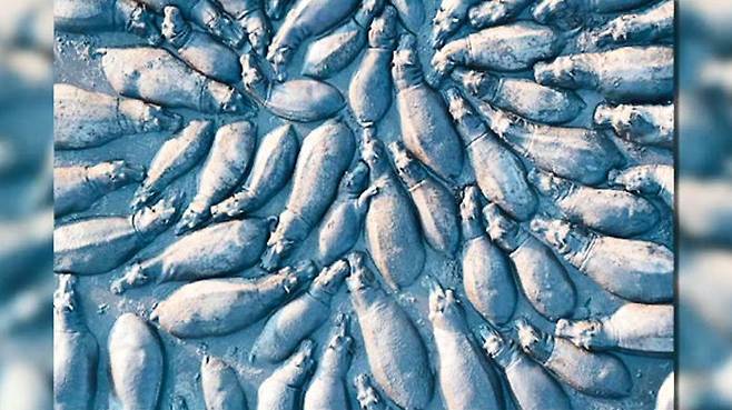지구온난화로 고통받는 하마들을 촬영한 작품인데, 극심한 가뭄에 말라붙은 습지에 갇힌 하마들의 비극적인 상황을 표현하고 있습니다.