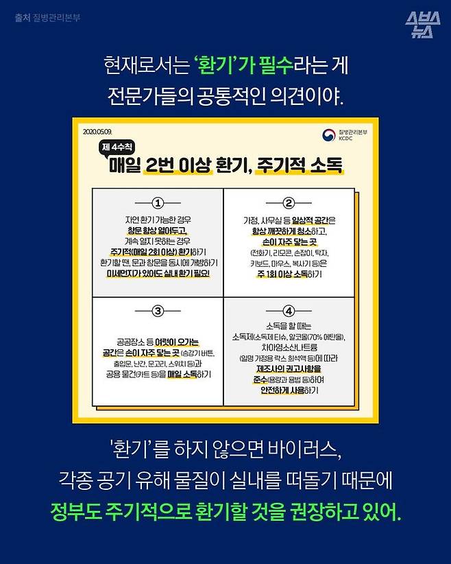 정부도 '생활 속 거리 두기 수칙'을 통해 외부 미세먼지 농도가 좋든 나쁘든 상관없이 주기적으로 환기하는 걸 권장하고 있죠.