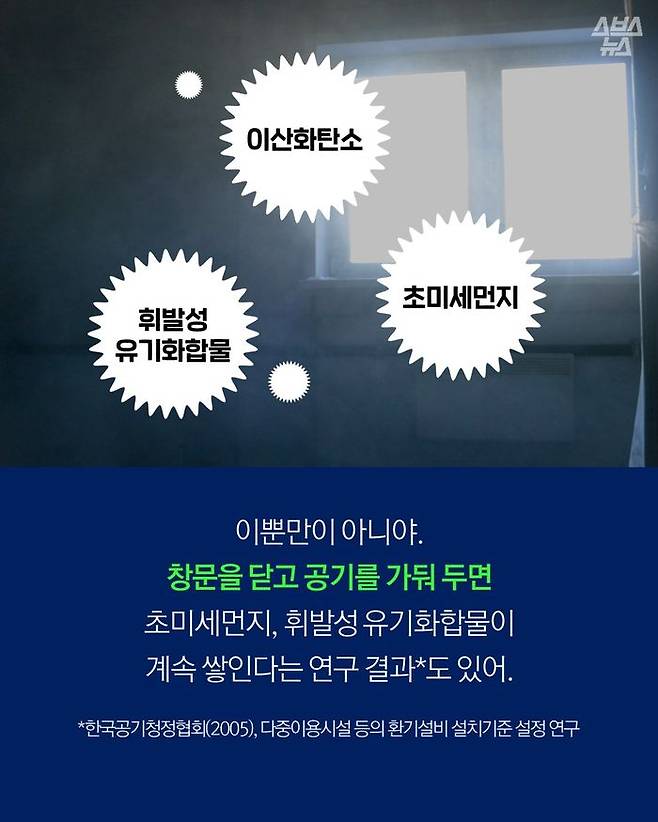 대체 환기를 하지 않으면 실내 공기질이 얼마나 안 좋아지길래 이렇게 강조하는 걸까요? 스브스뉴스가 전해드립니다.