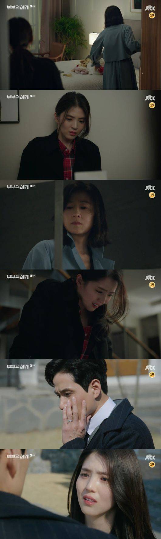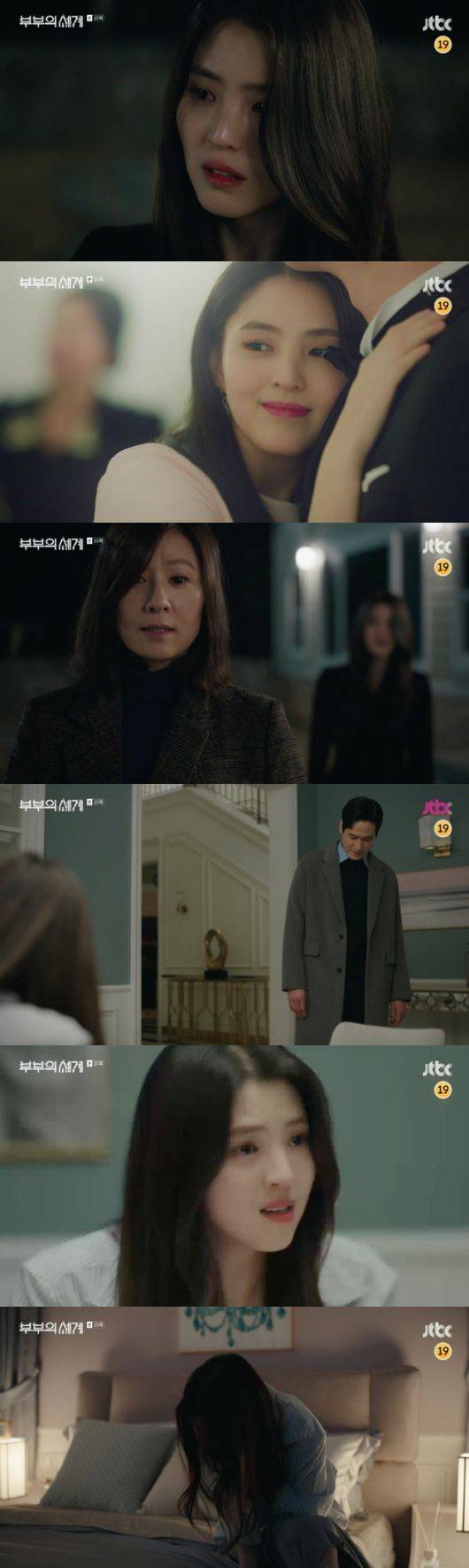 그는 "나한테 프러포즈 할 때 썼던 그 노래 그 여자한테도 똑같이 썼더라. 당신이 나한테 사준 향수 그 여자가 썼던 거였어. 속옷, 웨딩 드레스 전부 다. 당신한테 난 뭐야? 망상에 빠진 건 그 여자가 아니라 나였어. 이제 모든 걸 알아버렸다고. 당신한테 난 지선우 대용품일 뿐이었다는 거. 그 여자한테나 가"라며 매몰차게 떠났다. 불륜으로 시작했던 여다경의 불안한 '부부의 세계'가 완벽하게 깨진 순간이었다.