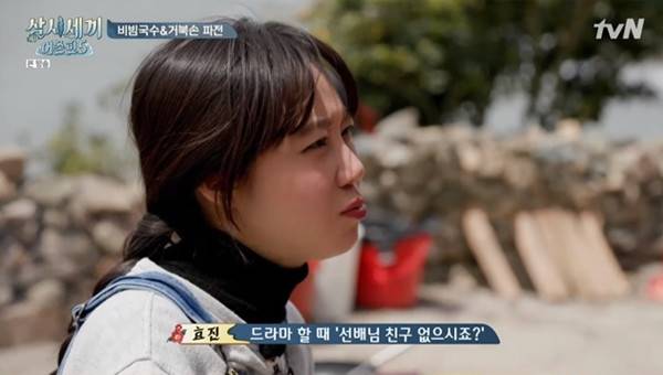 공효진은 그 화기애애한 식사에 기분 좋아지는 일화를 들려준다. 드라마 함께 할 때 차승원에게 "친구 없으시죠?"하고 물었더니 "하나 있어. 유해진이라고."라고 했다는 거였다. 가만히 듣던 손호준이 "되게 감동"이라고 하자 멋쩍은 듯한 유해진이 특유의 너스레를 떤다. "에이 그게 뭐 감동이야. 한 명 있어 그래야 감동이지. 내가 하나야?" 웃음이 빵빵 터지며 식사시간은 한 없이 즐거워진다.