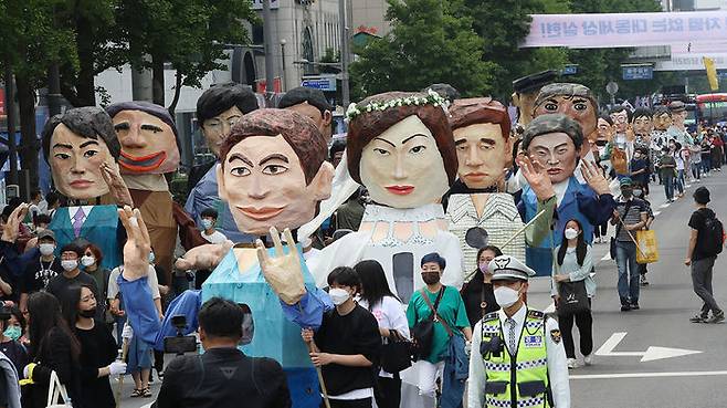오월 영령들의 행진..발 아래 '전두환 갖가지 얼굴'