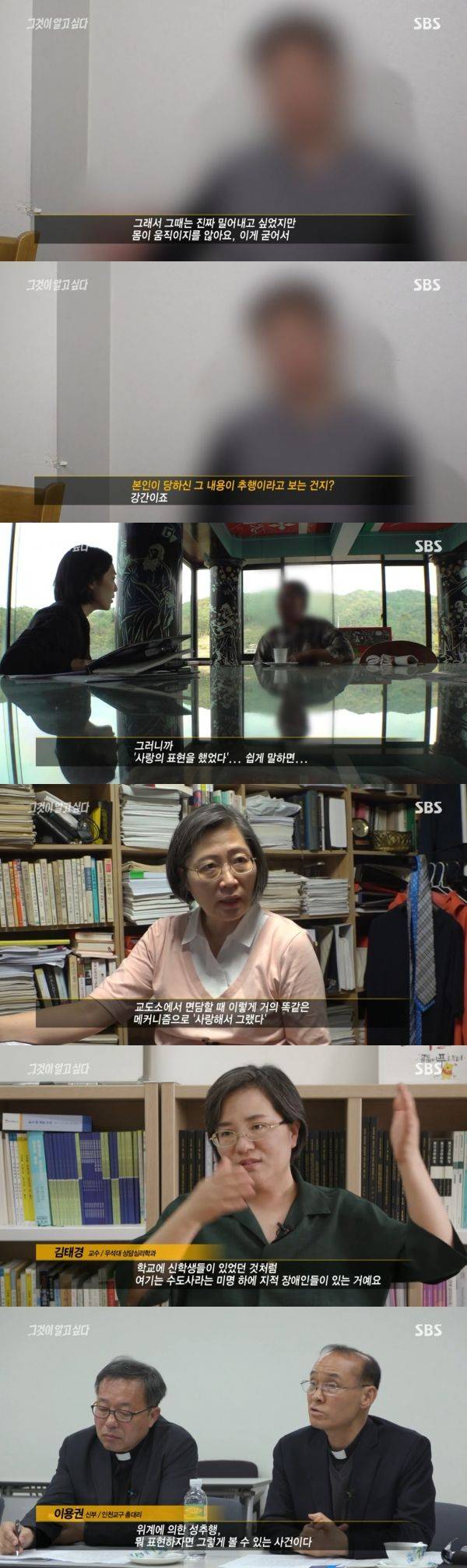 해당 신부는 제작진의 '본인이 당하신 그 내용이 추행이라고 보나'라는 질문에 "강간이다. 이런 인간이 아직도 교회 신부라는 이름으로 존재하고 있다는 그런 모습이 싫다"라고 말했다.