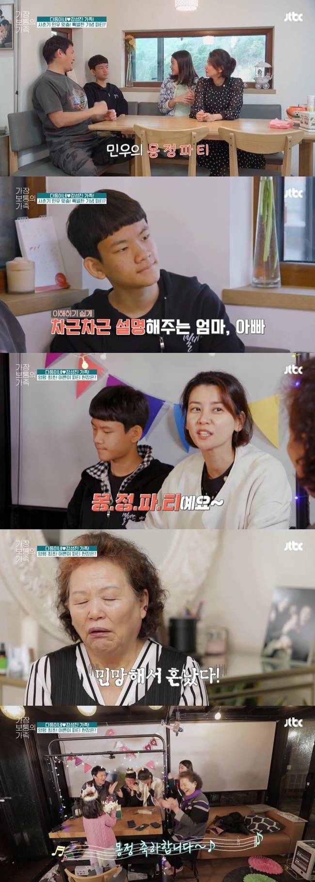 지난 5월 16일 방송된 JTBC 예능 프로그램 '가장 보통의 가족'(이하 '가족가')에서는 3대가 함께 모여 민우의 몽정파티를 진행하는 가족의 모습이 그려졌다.