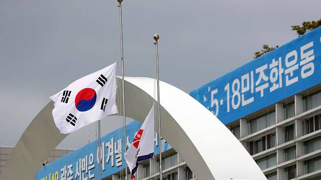 5·18민주화운동 40주년 기념일인 18일 광주 서구 광주광역시청에 조기가 게양돼 있다.