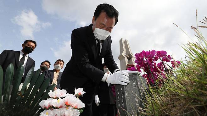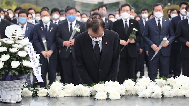 더불어민주당 이해찬 대표가 18일 오후 광주 북구 국립5ㆍ18민주묘지를 참배하고 있다.