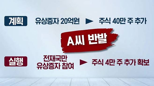 [김경율/공인회계사 (경제민주주의21 대표) : 이와 같은 유상증자의 결과로 어떤 일이 벌어졌냐면, 결국은 애초 전재국 씨가 이른바 경영권을 가지고 있었고 경영권을 상실할 수 있는 위험한 순간이 있었는데, 그 위험한 순간을 무난히 넘어가 버린 겁니다.]