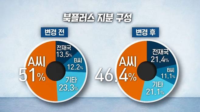 A씨가 지분 51%를 인수한 직후인 지난해 7월 전재국 씨 보유 주식 수가 늘어나면서 A씨 지분율을 50% 아래로 떨어뜨렸기 때문입니다.