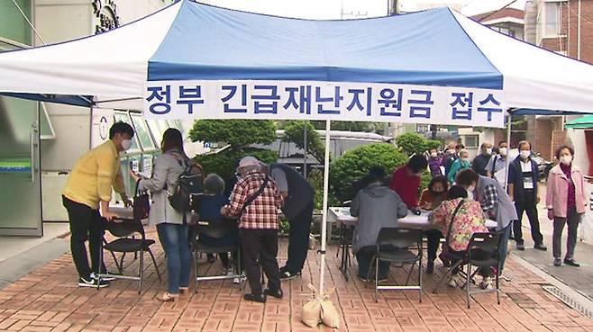 오전부터 긴 줄..재난지원금 현장 접수 첫날 풍경