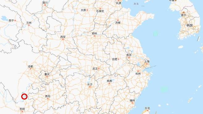 (사진=바이두 지도 캡처, 윈난성 웨이보 캡처, 연합뉴스)