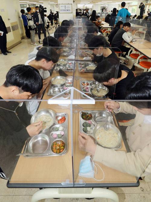 [현장] 투명 가림막 앞에 두고 "급식 잘 먹겠습니다"