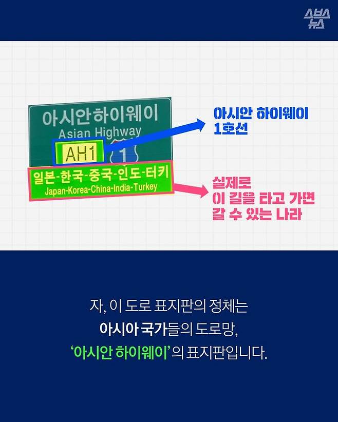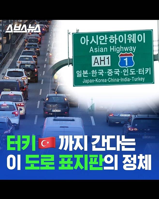 이 표지판에는 우리나라 고속도로임에도 불구하고 터키, 중국 등 세계 각국의 이름이 적혀있죠. 대체 아시안 하이웨이가 뭐길래, 그 머나먼 곳까지 차를 타고 갈 수 있다고 하는 걸까요?