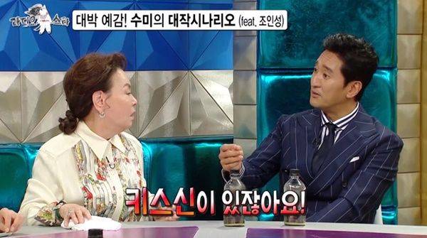 함께 출연한 배우 신현준이 "그 시트콤은 조인성과 준비한 멜로와 다른 거냐"고 묻자, 김수미는 "조인성을 주인공으로 한 시나리오를 진지하게 준비했는데 조인성이 거절했다"고 밝혔습니다.