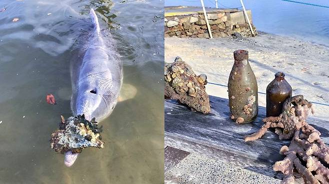 자원봉사자들과 시민들은 입을 모아 "바닷속에 보물창고가 있어서 소장품을 진열해 놓은 게 틀림없다"며 즐거워하고 있습니다. 코로나19로 잠시 중단됐던 '돌고래 먹이 주기' 프로그램은 지난 16일 운영을 재개했습니다.