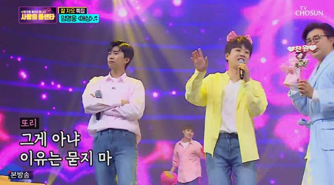 임영웅, 이찬원, 장민호가 팬 요청에 즉석에서 그룹을 결성했다.