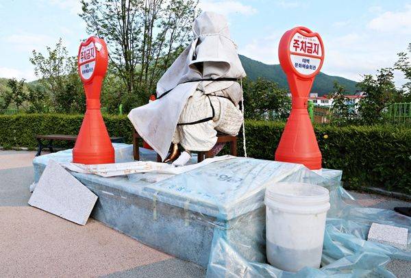 이를 본 정미경 태백시의회 의원은 "역사를 바로 세우자는 시민의 뜻으로 제작한 평화의 소녀상인데 이렇게 취급하다니"라며 비판했습니다.