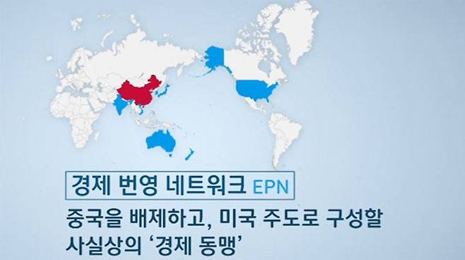 글로벌 공급망, '단 중국은 배제한' 경제 동맹을 아시아 태평양 동맹국들과 얘기했다는 것입니다. 어제(21일) 미 경제 차관이 한국과 상의했다고 한 경제번영네트워크, EPN 구상입니다.