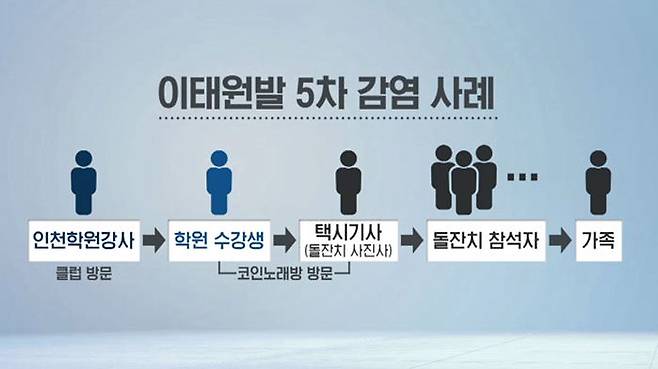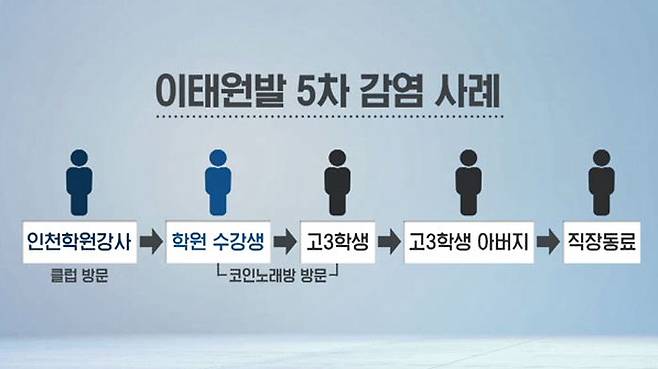 이 학원 강사에서 제자, 같은 노래방에 갔던 학생, 아버지, 직장 동료로 5차 전파가 일어났고,