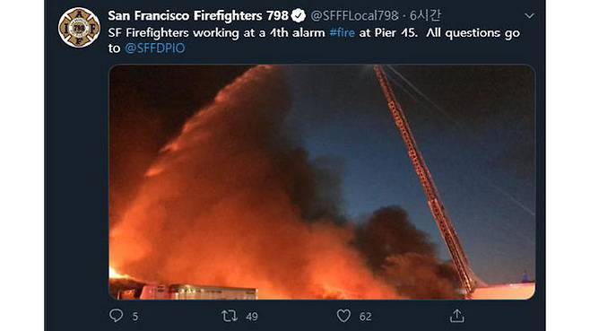 샌프란시스코소방서는 이날 화재로 45번 부두의 4분의 1이 소실됐다고 밝혔습니다.