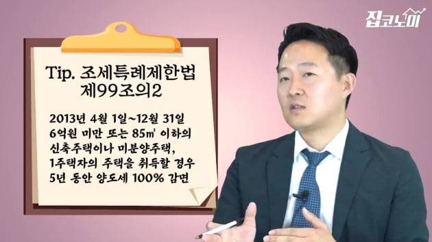 그때 당시에 2013년 4월 1일 ‘4·1 부동산대책’이란 걸 발표했어요. 1주택자들이 부동산 경기가 안 좋아서 집을 못 파는 상황이었죠. 이사를 가고 싶어도 집을 팔 수 없는 그런 상태가 발생했으니 그런 집을 사면 매수하는 사람에게 앞으로 5년 동안 양도세를 100% 감면해주겠다는 내용이었습니다.