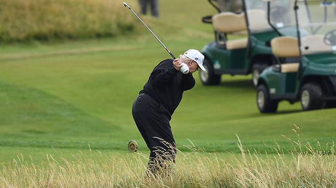 대신 트럼프 대통령은 골프 카트를 혼자 몰았으며, 캐디는 보이지 않았다고 CNN은 전했습니다.